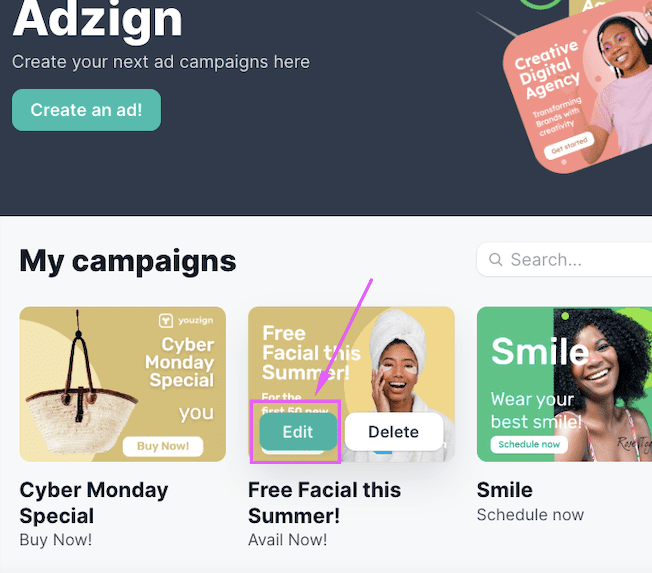 If you think that an element on your ad is off, you can use the edit button to correct them.