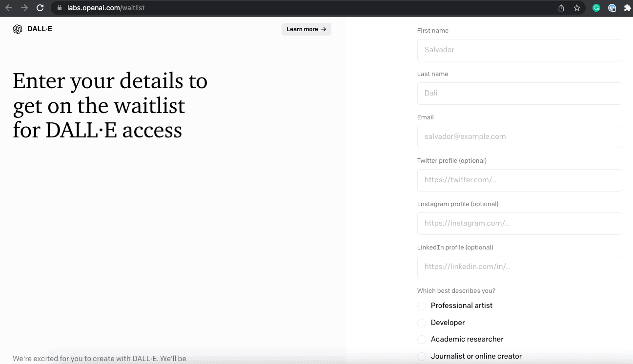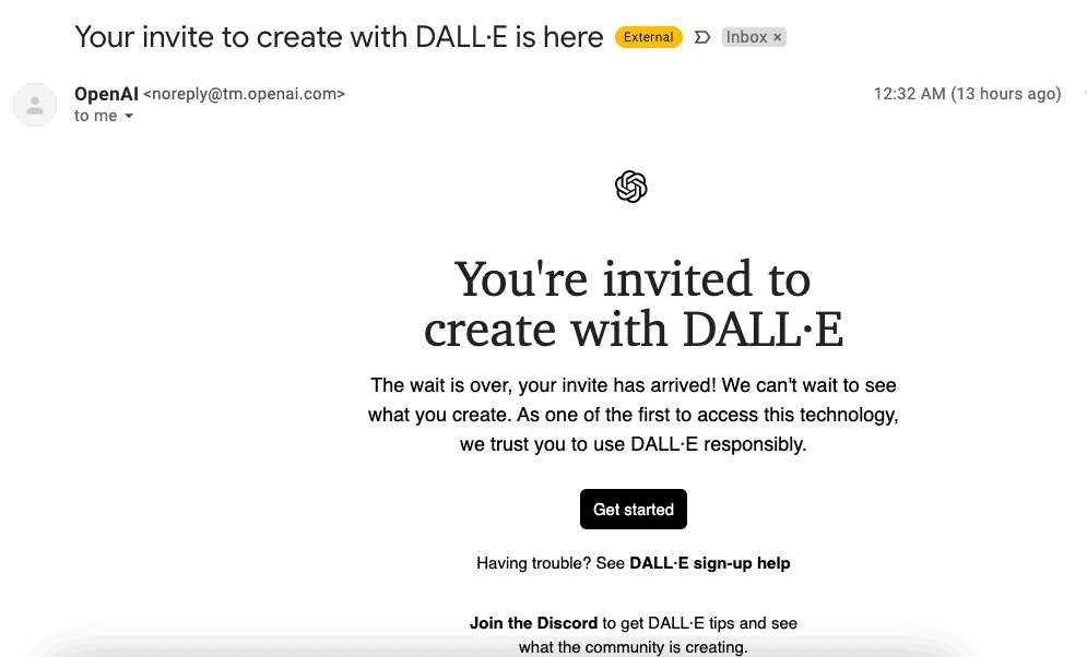 2. You will receive a confirmation in a few hours and you can already sign up for your Dall-e account.