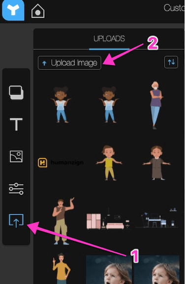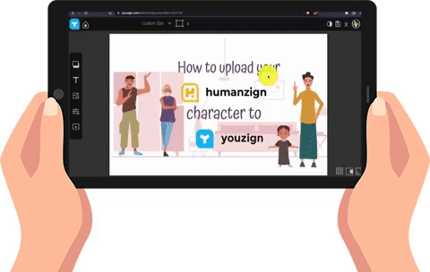 To add your humanzign character to Youzign, simply use the Upload button found inside the Uploads tab. :)