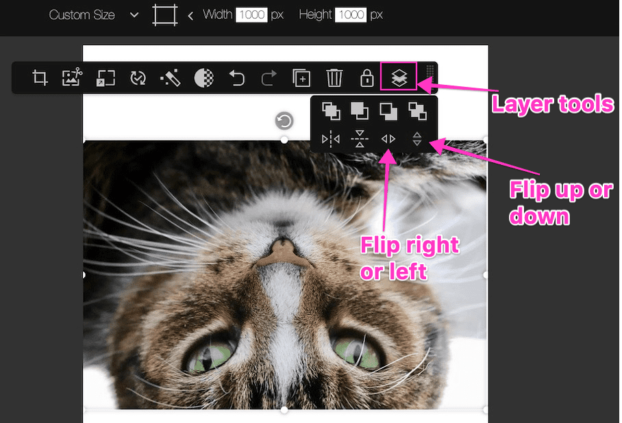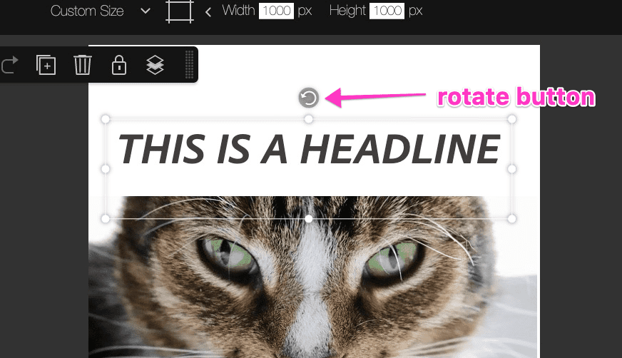 1. One is to click on the rotate button on top of the image/ text and move it to your preferred angle.