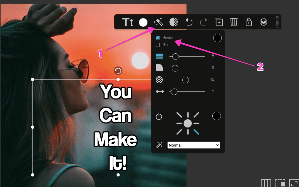 The Border tool in Youzign is not your typical border tool found in some other drag n’ drop graphics apps. When enabled on a certain element on your canvas such as text, image, or shape it gives it a distinctive effect so it pops on your design.