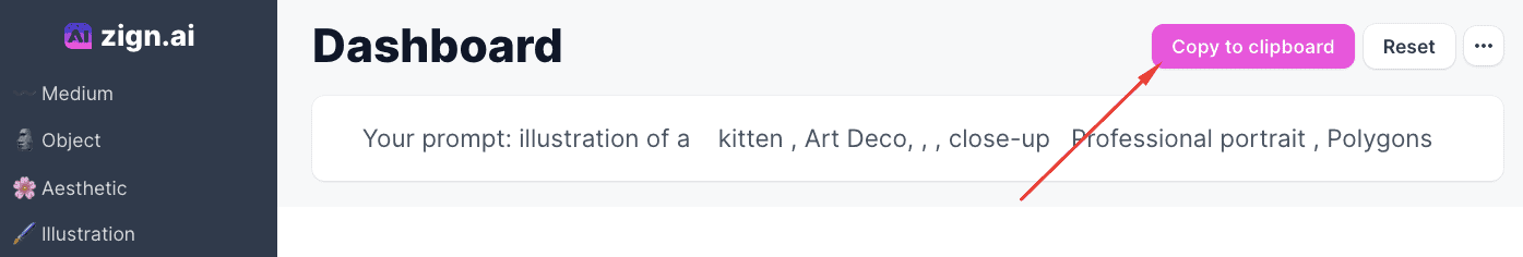 4. Once you are done adding your design attributes, you may now copy your prompt to your clipboard and paste it into your preferred text-to-image AI