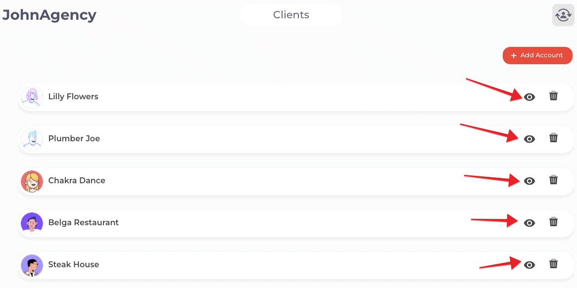 You can see what your client's dashboard looks like and what they see from your Agency admin account.