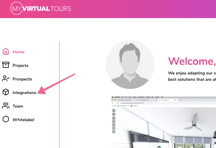 2. Inside your dashboard area, click on the Integrations tab at the left side: