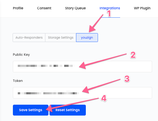 3. Then choose Youzign. Enter your public API Key and Token.