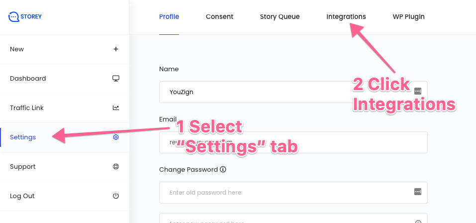 1. Login to your Storey dashboard.